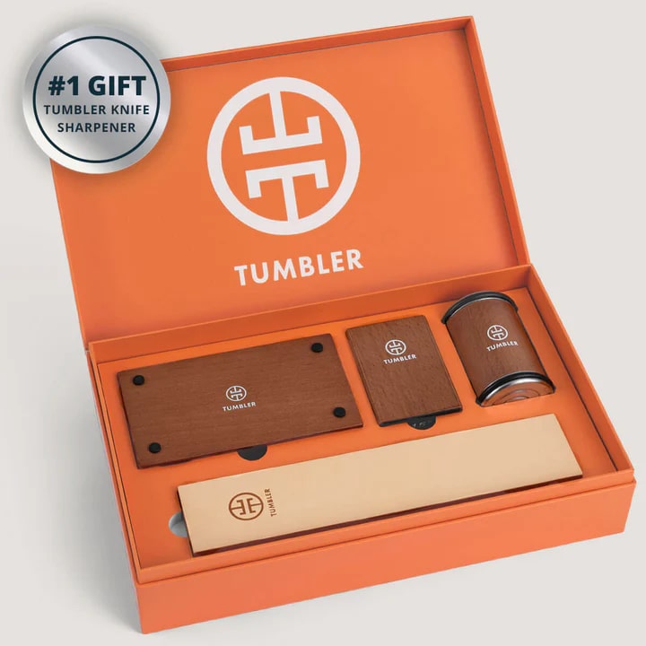 Tumbler presents the most intelligent method for sharpening your knives, offering intuitive operation and rapid outcomes. Simply affix any metal knife to the magnetic knife sharpener, then glide the Tumbler rolling sharpener along the blade’s edge to sharpen any household or kitchen knife effortlessly.